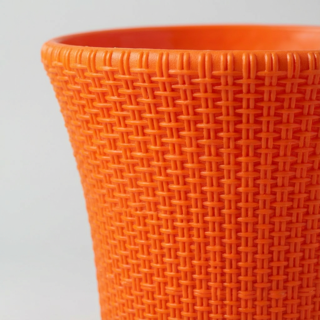 Crafted with a distinctive helix-patterned outer design, this pot adds depth and character to your décor. The vibrant orange color creates a lively, energetic look that instantly enhances any space.